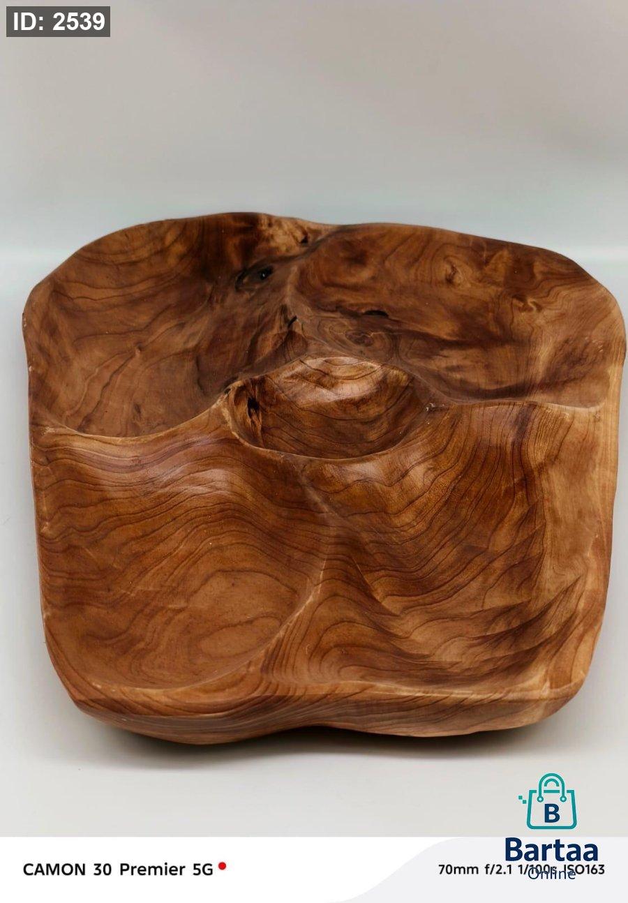طبق خشب طبيعي بتصميم فني مميز 🌿 تقسيم داخلي أنيق مثالي للمكسرات أو المقبلات، مع عروق خشبية فريدة بكل قطعة. لمسة فخامة طبيعية تضيف جمال خاص لطاولتك ✨