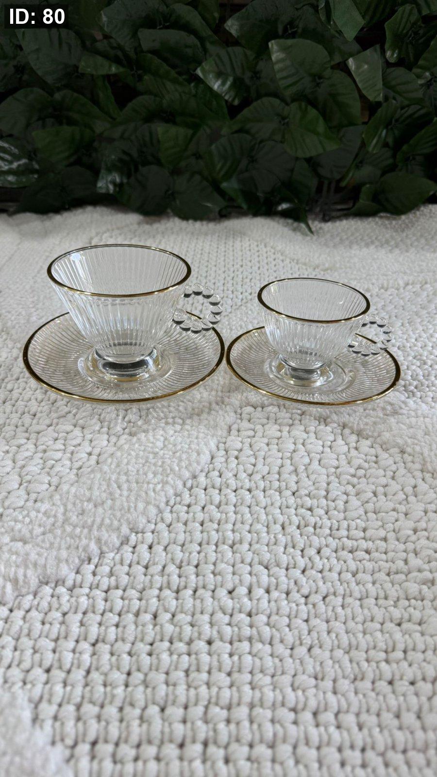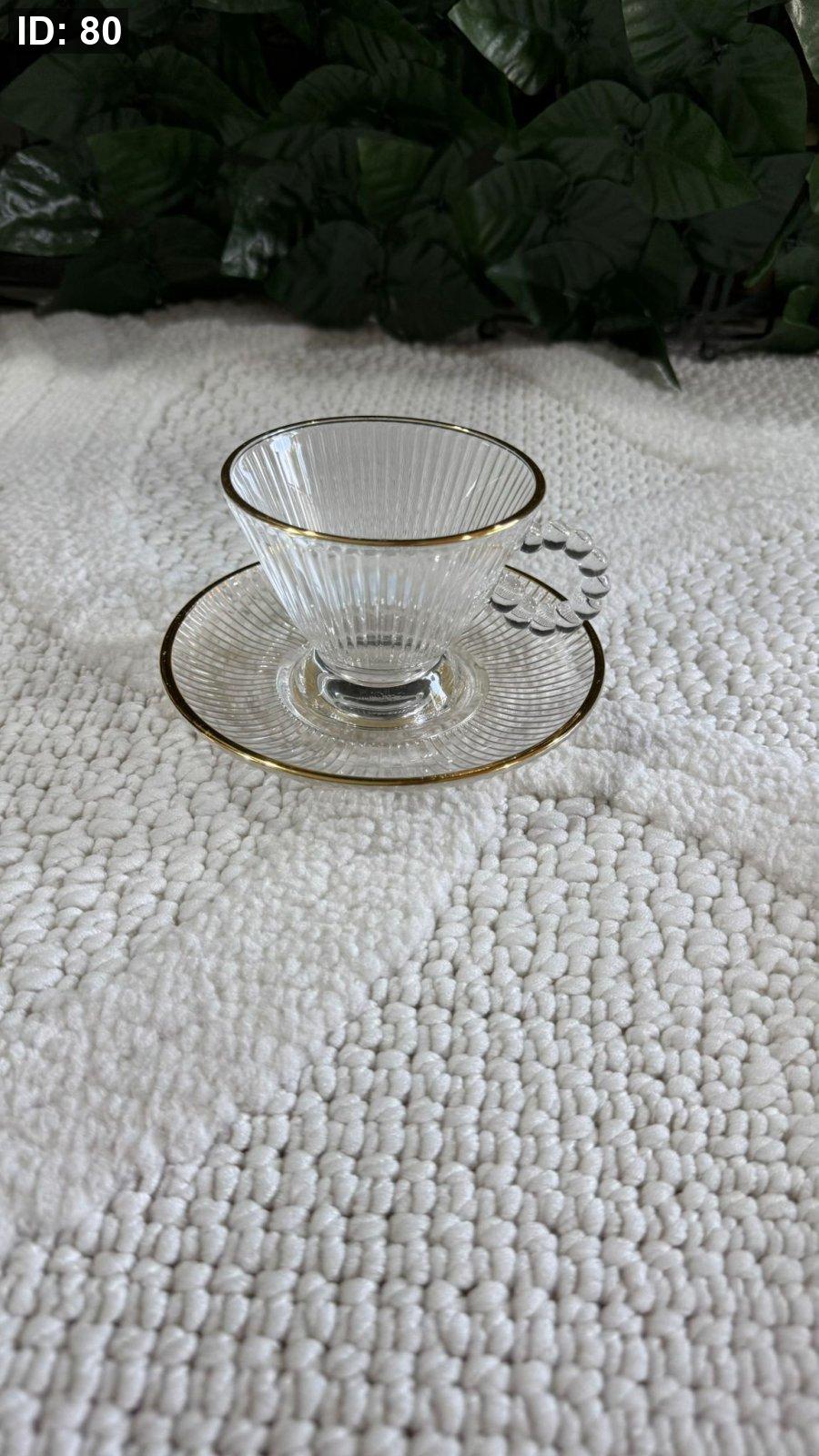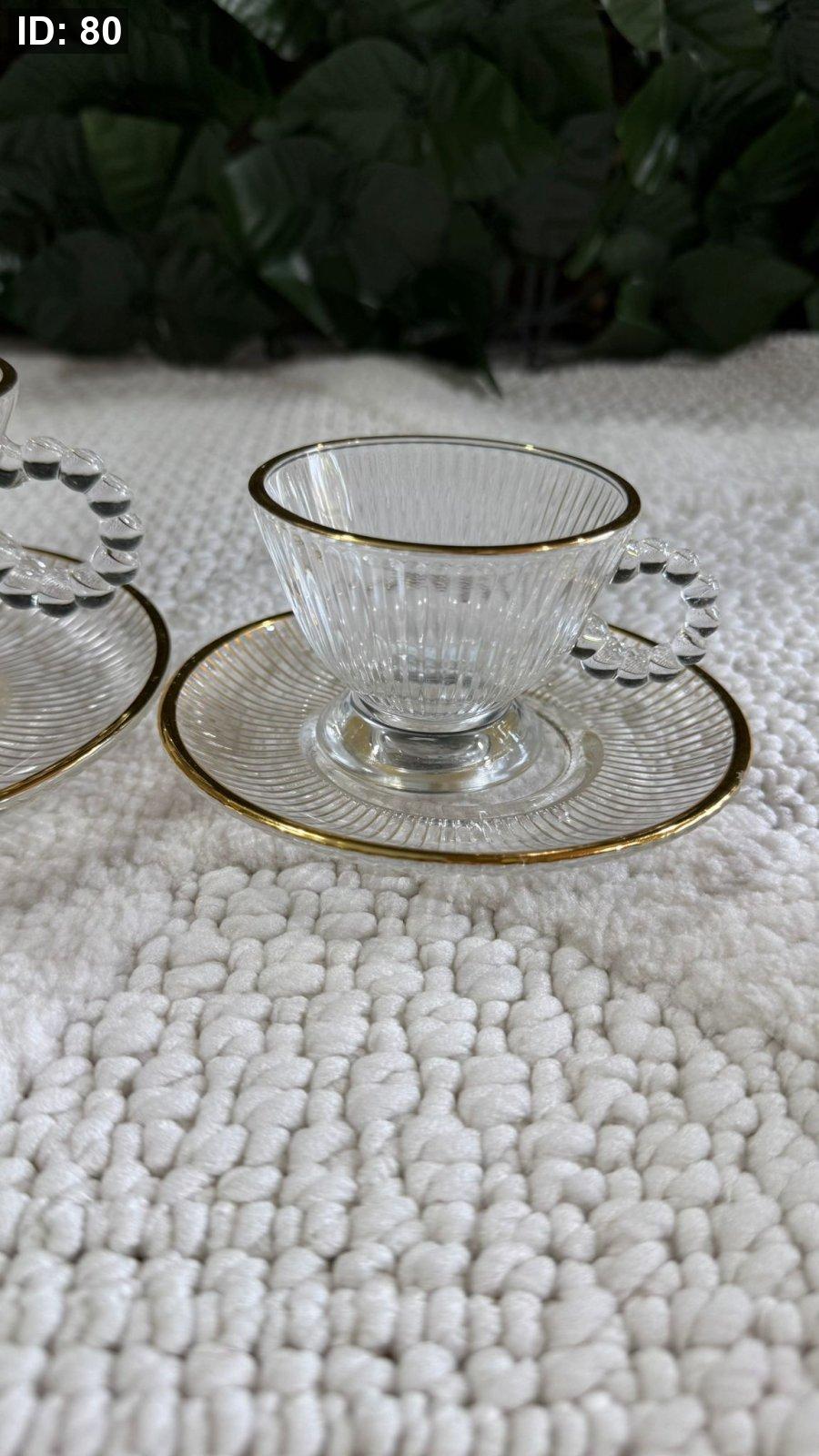 كاسات شاي مع صحونهن وفناجين وصحونهن